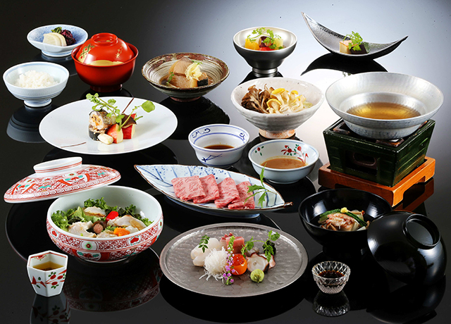 旬の食材を贅沢にあしらった会席料理をベースに、お肉を基調とした石窯料理を組み合わせた